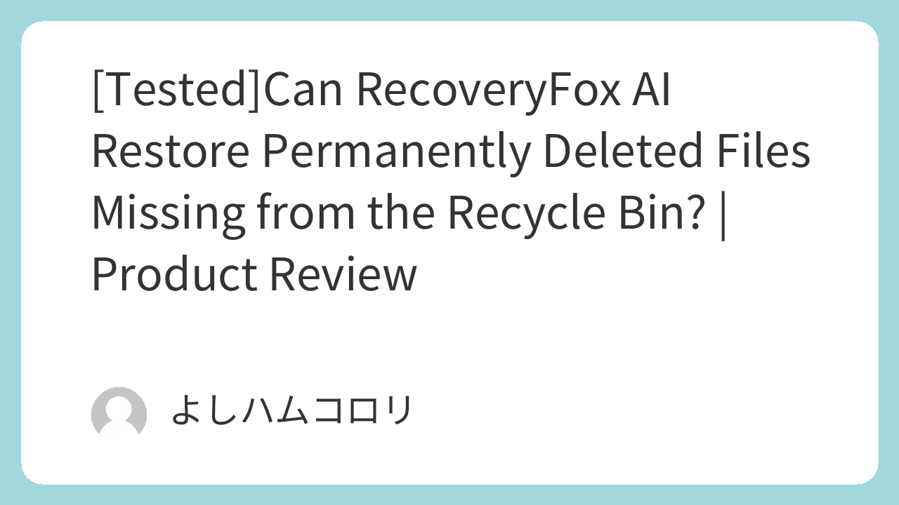Hello, my name is yoshihamkorori. I have been working as an IT engineer for over 25 years. Have you ever accidentally deleted a file on your computer and later thought, “Hmm… where did that file go?” In this article, I would like to share my impressions of using the data recovery software WonderFox Soft’s “RecoveryFox AI.” Please note that these are purely my personal opinions.